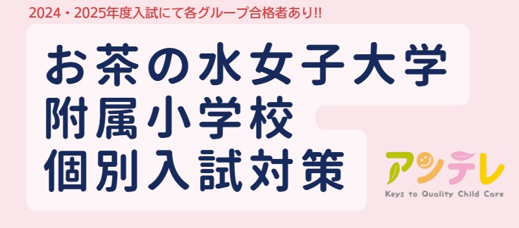 【お茶の水女子大学附属小学校 対策講座のご案内】 アンテレでは、2026年度入試に向けたお茶の水女子大学附属小学校 対策講座を 4月より開講いたします。 近年、高い合格率を維持している実績ある講座です。(昨